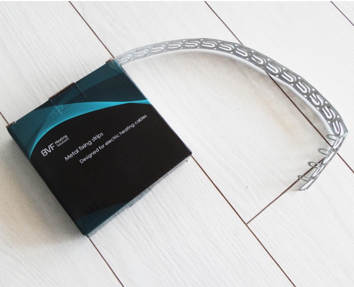 BVF rögzítő szalag: Amennyiben a kábelt az aljzatképzés/betonozás után fektetjük csemperagasztóban vagy aljzatkiegyenlítő rétegbe. A szalagon beállíthatóak a meghatározott fektetési távolságot.